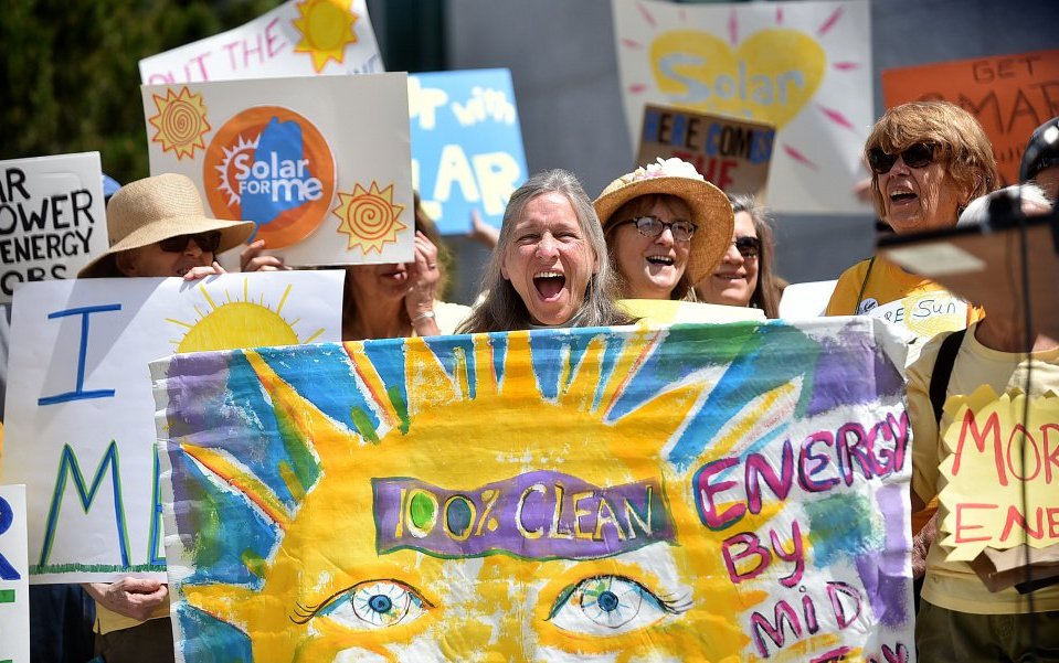 Dozens of people crowd a hearing on new rules that the Legislature is considering to encourage homeowner use of solar power.