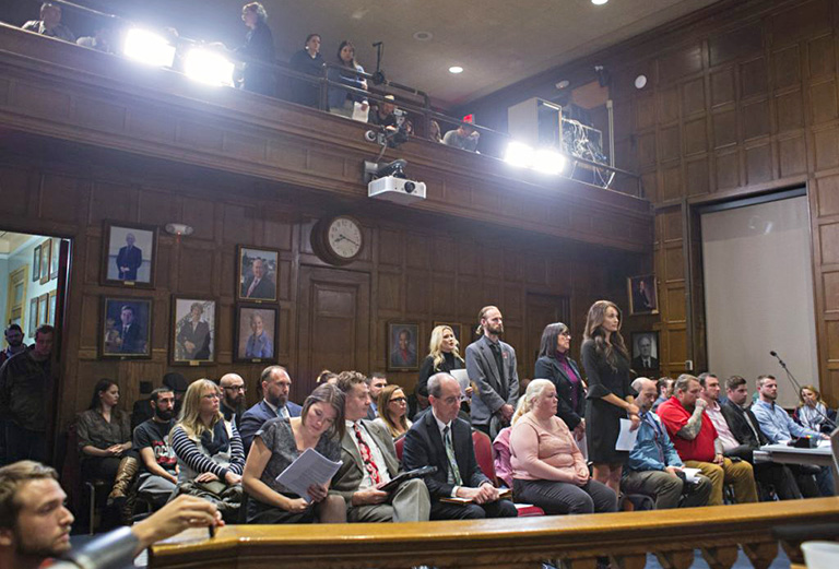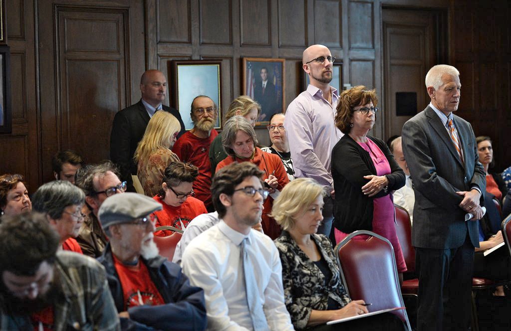 A large crowd attends the meeting even though no debate or public comment is allowed on a proposal to rescind the council’s endorsement of Waterfront Concerts’ fourth summer of shows.