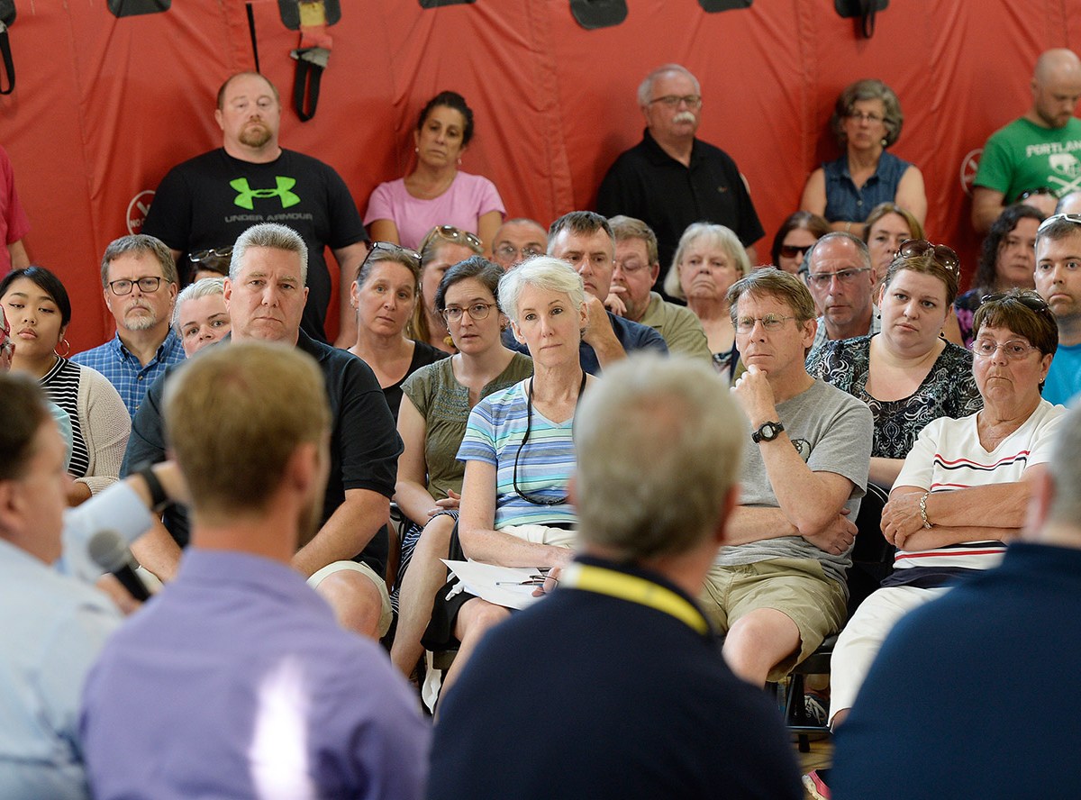 Hostile crowd criticizes Portland proposal to build emergency shelter at Barron Center