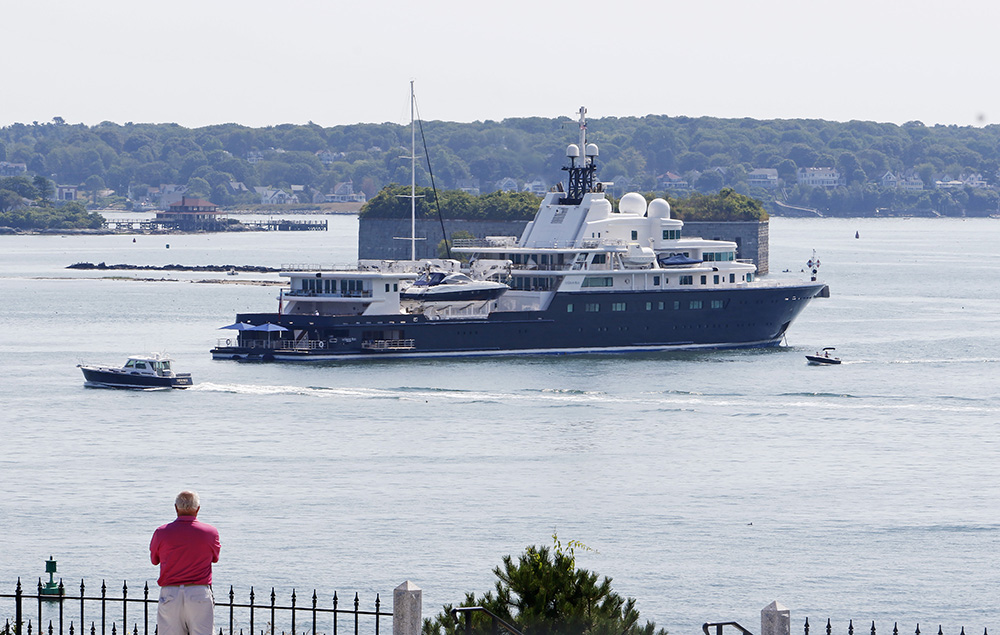 Le Grand Bleu, owned by a Russian-American oil tycoon, arrived last week, according to the harbor master.