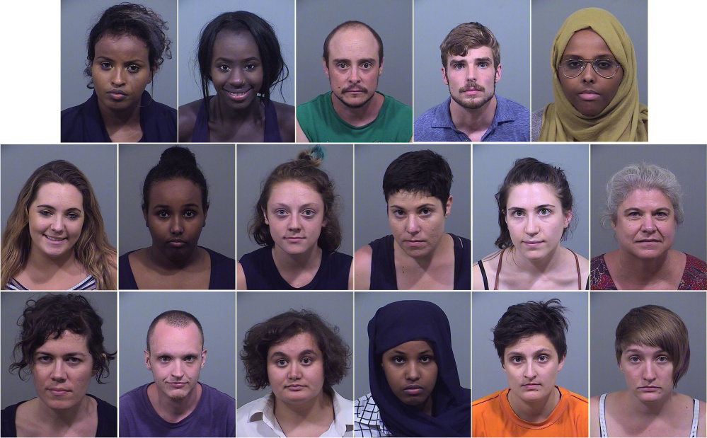 Police release the names of the adults charged with obstructing a public way for blocking Commercial Street.