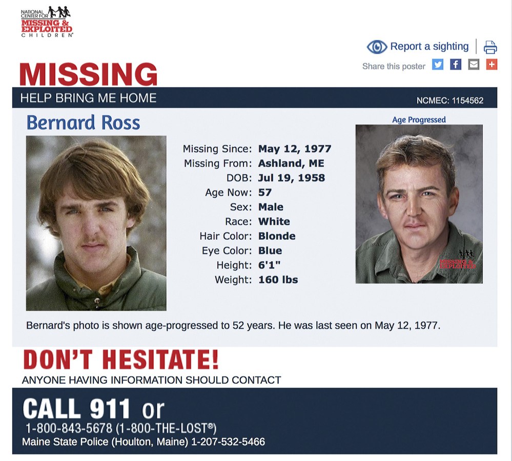 Carol and Bernard Ross of Portland recently received an anonymous letter claiming to know details about the disappearance of their son, Bernard “Bunny” Ross Jr., in 1977.