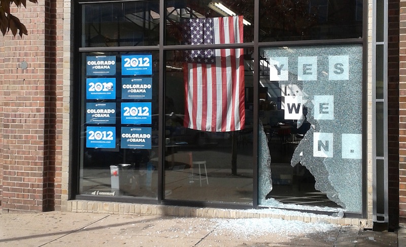 The swastikas come one week after a shot was fired through the window of an Obama campaign office in Denver.