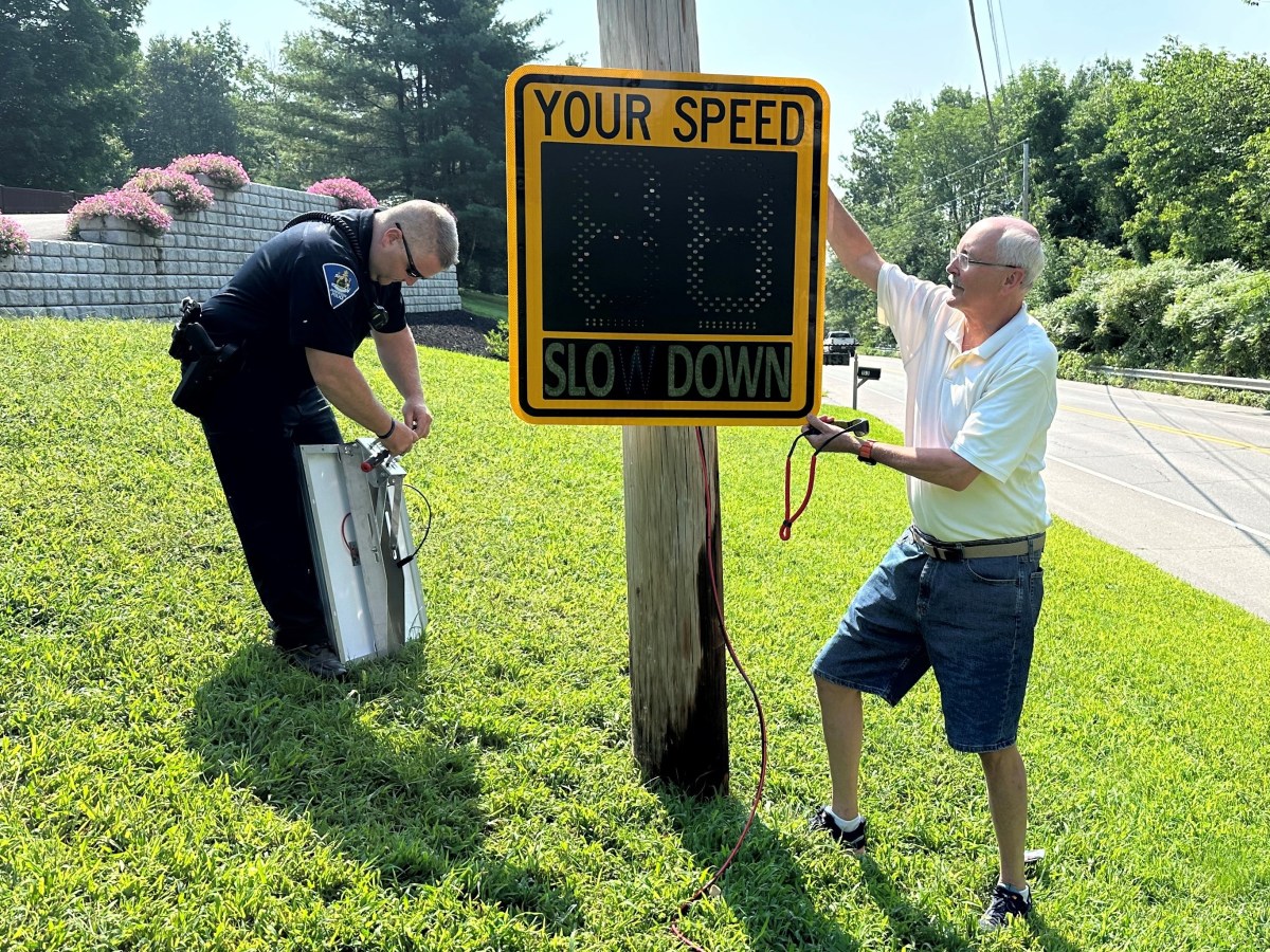 Stephan Bunker donated the warning sign as a means t promote highway and public safety.