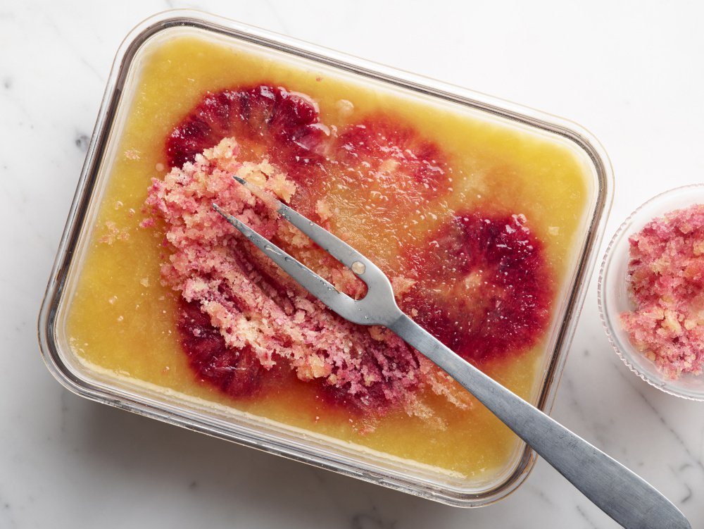 Pomegranate and Valencia orange juice, with blood oranges and coconut milk, make a sweet but low-fat treat.