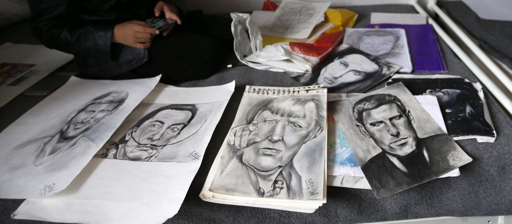 Farhad Nouri, a refugee from Afghanistan who is stranded with his family, draws ‘feelings and faces.’