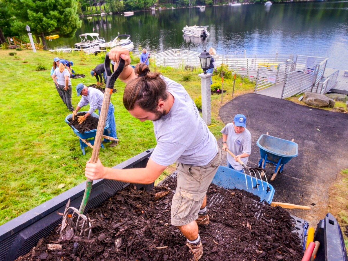 Volunteers shore up lakefront at Travis Mills veterans retreat in Rome