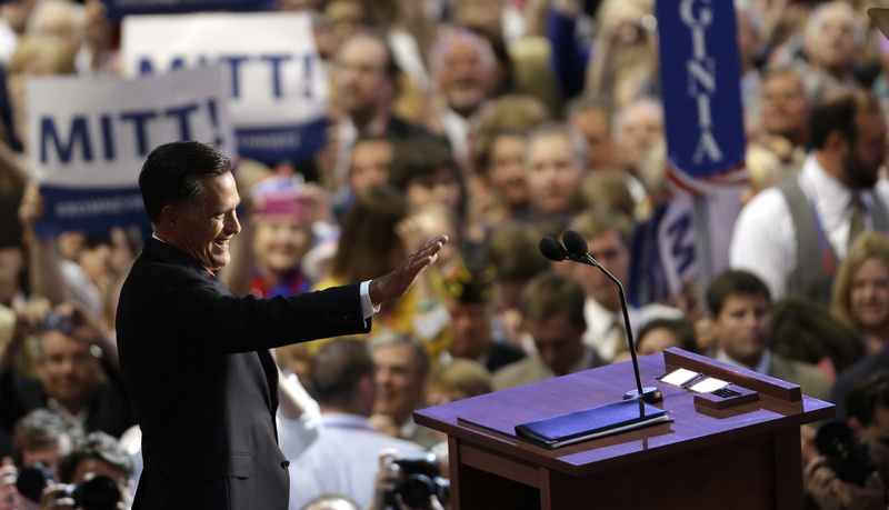 “I will begin my presidency with a jobs tour. President Obama began his with an apology tour,” Romney says during a rousing, personal speech to the Republican National Convention.