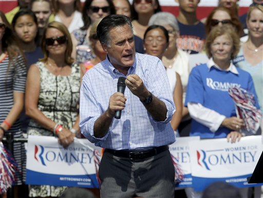Romney says the president has led at a time of falling incomes, high unemployment and a widening gap between rich and poor.