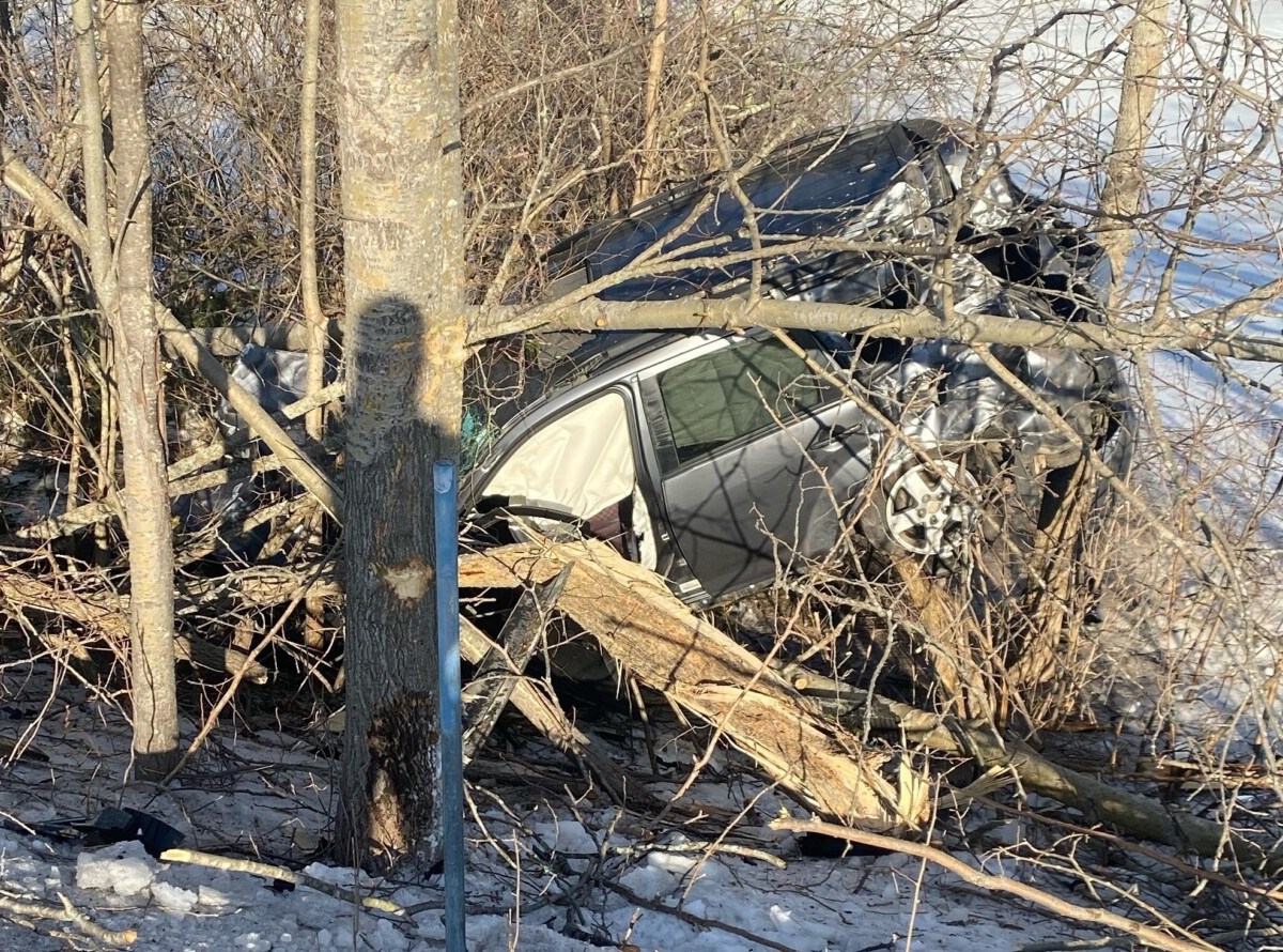 Vehicle lands in trees; injured driver trapped inside Thursday morning.