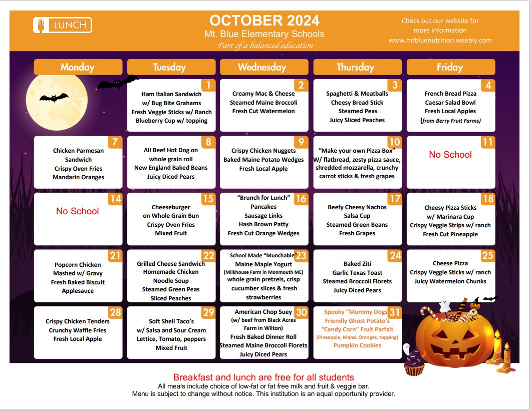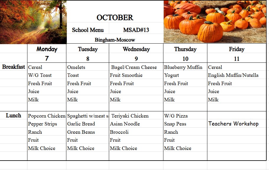 Bingham-Moscow school lunch menu for Oct. 7-11