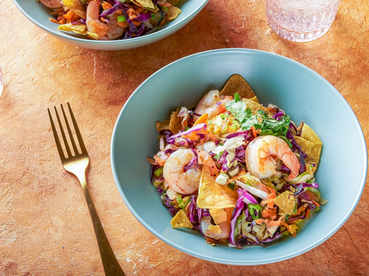 Hot honey shrimp and a crisp slaw make a quick meal for summer nights