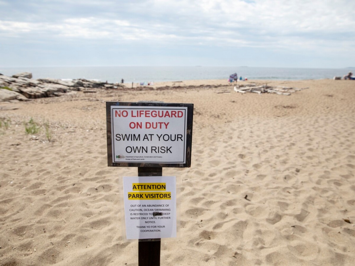 Both Popham Beach and Reid State Park are telling beachgoers to stay in shallow water — about waist-deep, according to the Maine Department of Agriculture, Conservation and Forestry.
