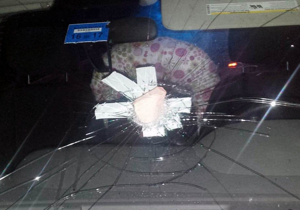 Police are searching for those responsible in the Wednesday evening incident in which a rock smashed the windshield of a car traveling on I-95.