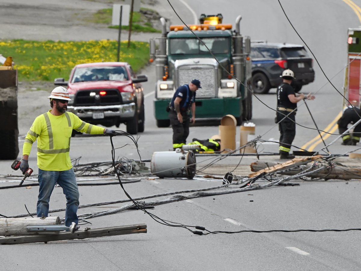 The road was expected to be closed until Sunday evening after a tractor-trailer truck hit propane tanks and took down utility poles earlier in the afternoon, officials said.