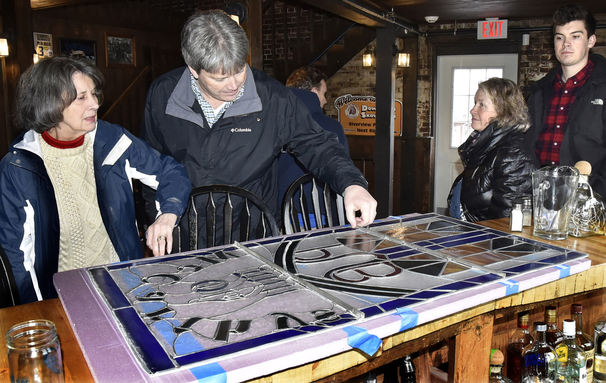 The Skowhegan restaurant’s owners gave the McCarthy family, the previous owners, the old window with their name on it that hung for 33 years.