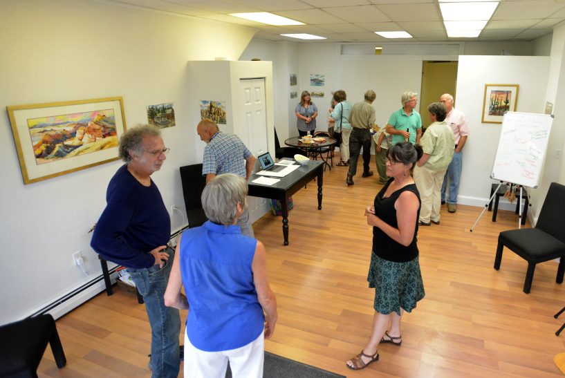 Gathering at Fourteen Madison gets ready for Wesserunsett Arts Council’s Aug. 12 tours of 20 galleries and studios.