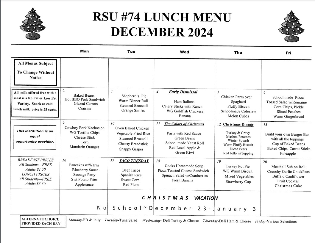 Carrabec school lunch menus