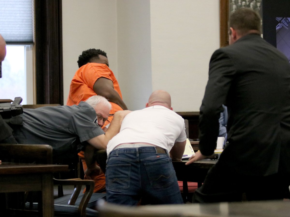 During the April incident, Clifford Warren jumped the bar and ran toward Jason Servil, who was being sentenced for the murder of Warren’s sister, Alice Abbott.