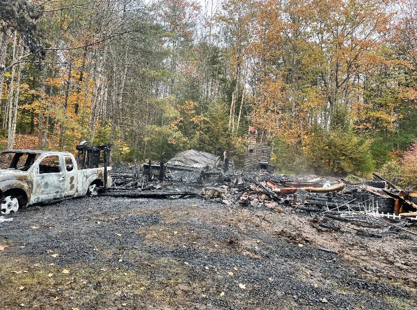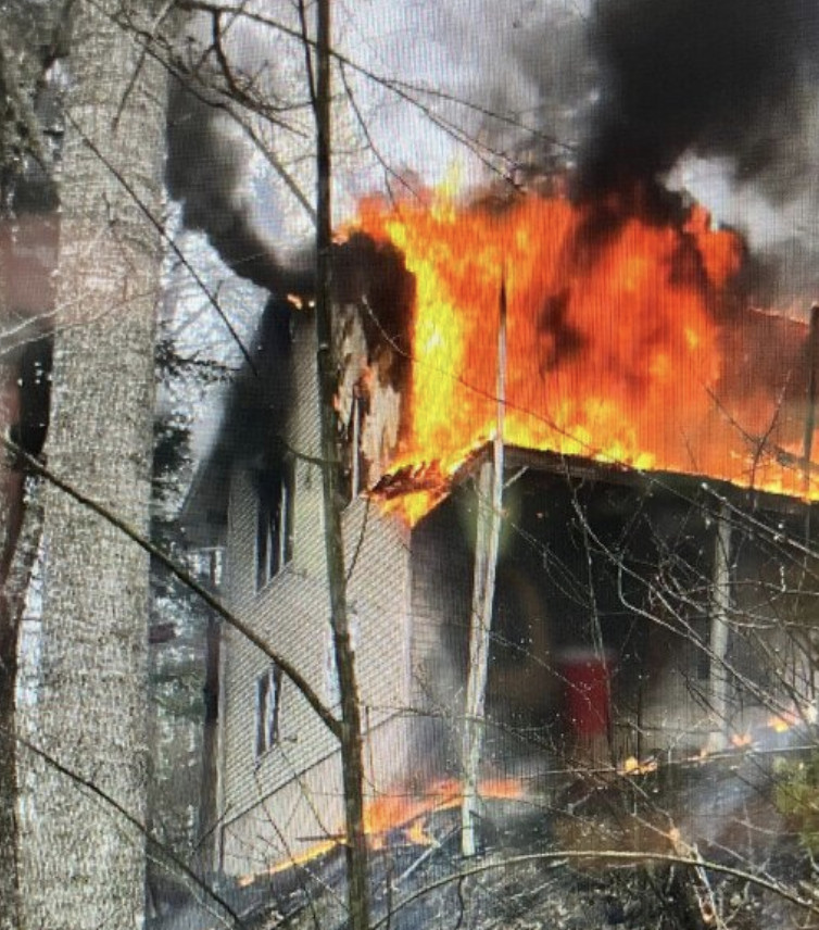 Authorities responded to a report of a house on fire Saturday on Crummett Mountain Road that was called in by hunters in the area.