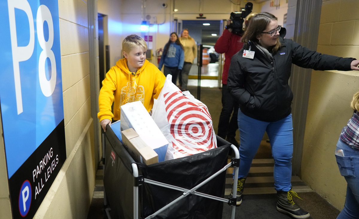 ‘Sam the Bottle Man’ Rideout, 10, had raised funds and donated toys for two years. Then, motivated further by his own experience, he delivered $6,371 in gifts and donations on Monday.