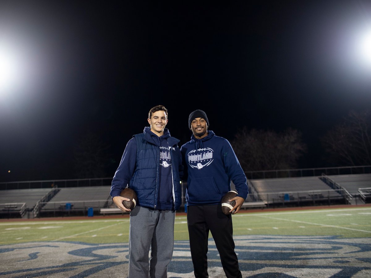 Chris Ferguson, a former University of Maine quarterback, and Saquan Hampton, a former NFL safety, are passing along their knowledge to the Bulldogs.