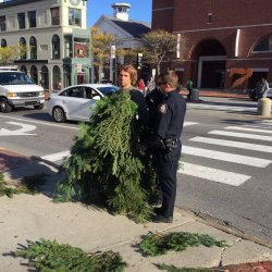 Police say Asher Woodworth, covered in branches, did not respond to officers who warned him to stay out of the intersection at Congress and High streets.