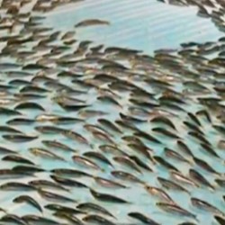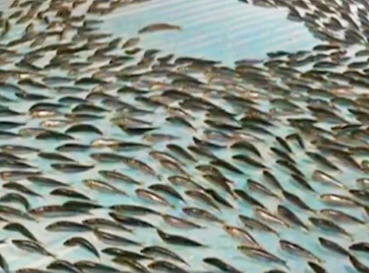 The fish were frozen against a blue floor, so it looked like they were swimming. Some formed the word ‘HELLO’ or made arrow-shaped signs in the ice.