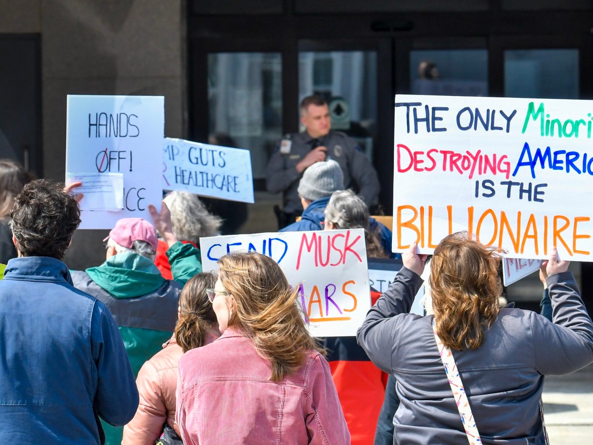 Tax Day rally draws critics of Trump funding cuts outside Maine State House