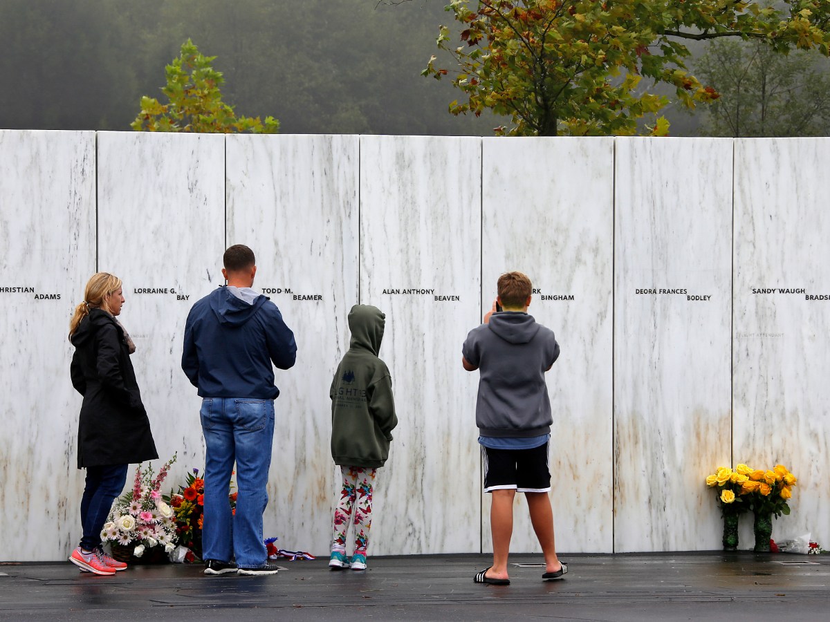 The president and his wife attended a memorial service at the rural field where a hijacked plane crashed, brought down by passengers who realized the U.S. was under attack.