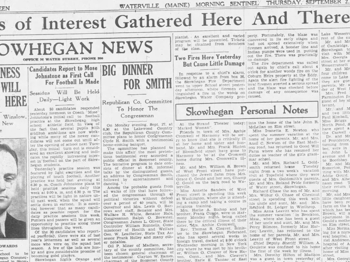 Showcasing what happened in the Skowhegan-area on this date for the week of August 26-Sept. 2. Visit Centralmaine.com/archive to view nearly 200 years’ worth of history at your fingertips.