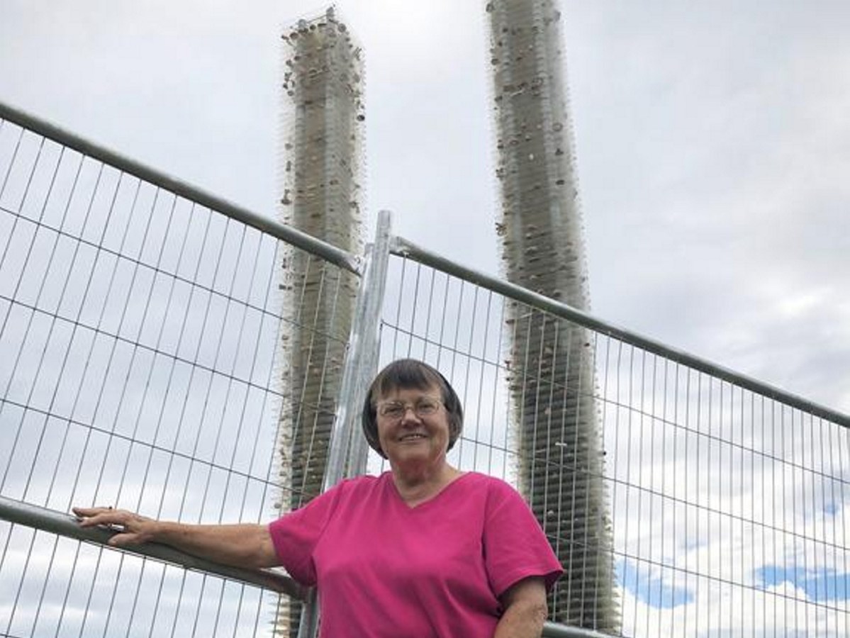 Two pillars erected outside Mt. Ararat High after the 2001 attacks are even closer to a new school under construction.