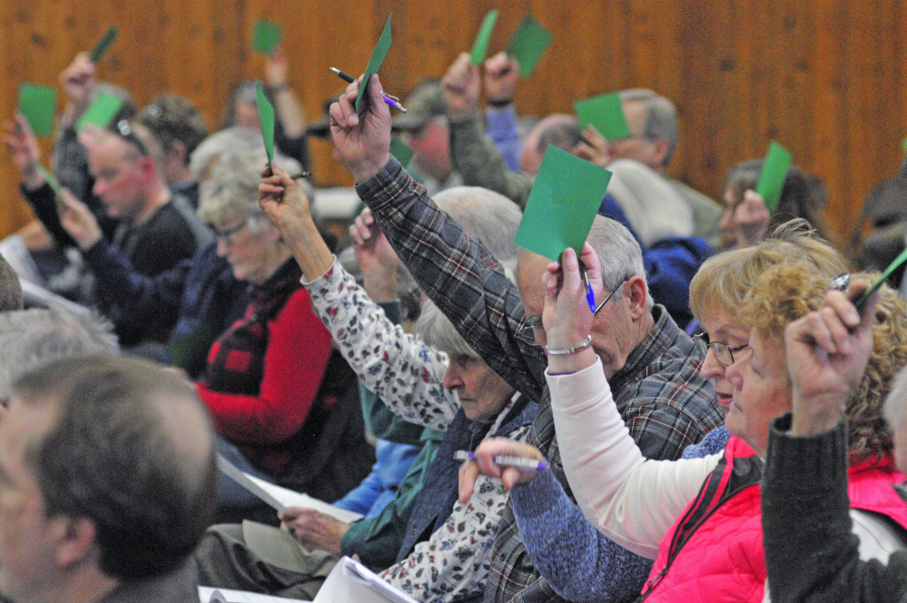 At their Town Meeting on Monday night, Chesterville residents passed a $842,999 budget, including $9,000 for cemetery maintenance and $100,000 for road maintenance.