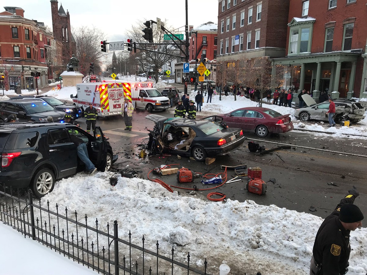 Portland police say man stole father’s vehicle and crashed into cars on Congress Street