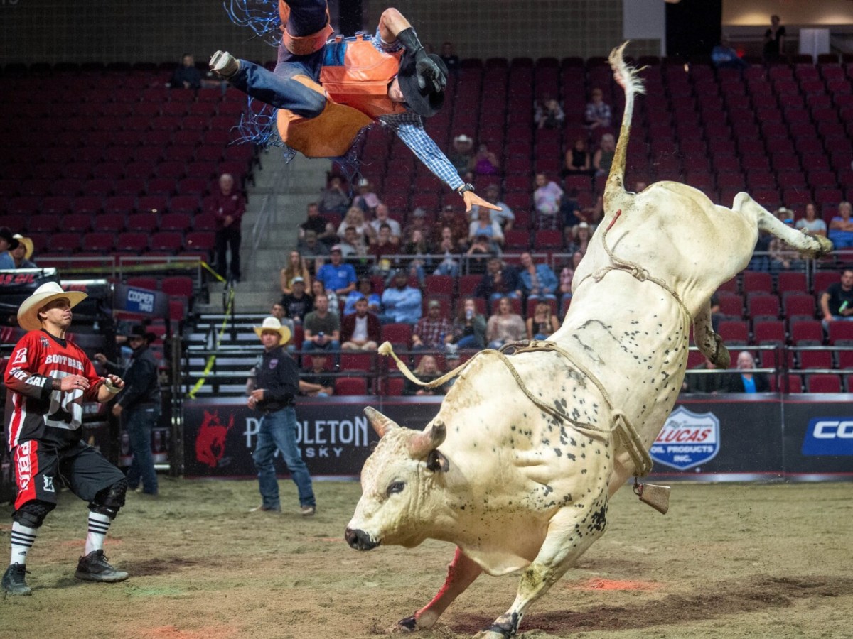 Riders on the Professional Bull Riders Velocity Tour earn points — and paychecks — the longer they can stay on a bull.
