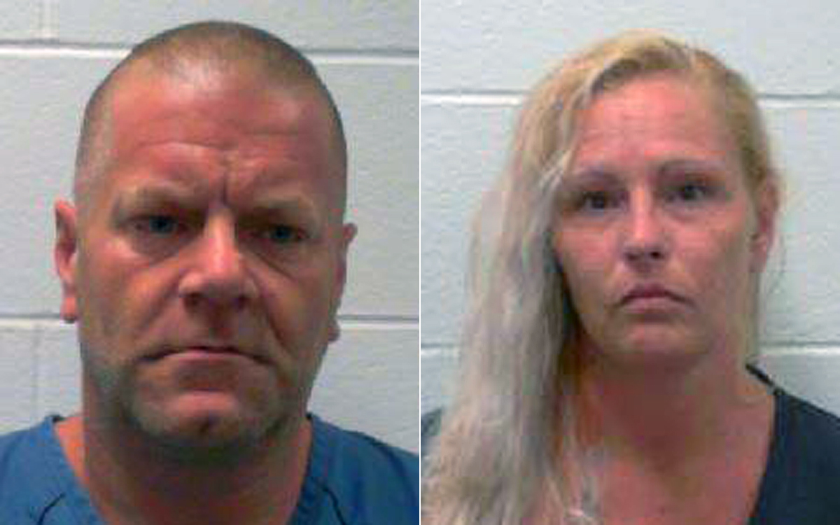 The homeowner told police he saw a man and a woman carrying items out of his house then took out a handgun and held them at gunpoint until police arrived.