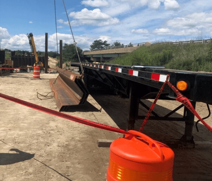 Maine State Police said Eric Jabbusch, 50, of Turner, was pinned when several steel sheet pilings fell off a truck.