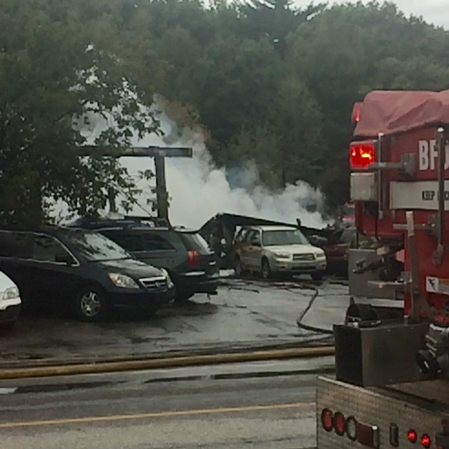 Fire at Turner auto body shop destroys 2 buildings, 15 vehicles