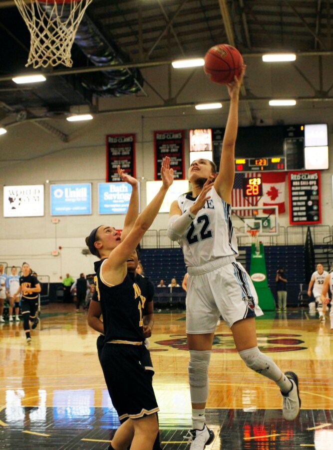 Lawrence graduate Nia Irving scores 20 points for Terriers.