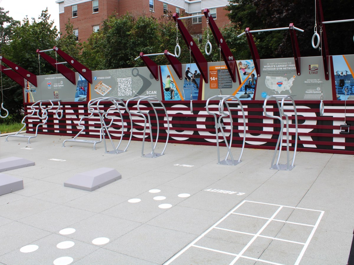UMF’s Fitness and Recreation Center pairs up with Community Health Options and National Fitness Campaign to open a free outdoor wellness court.