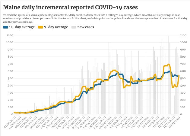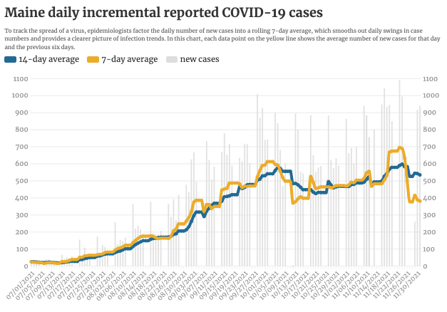 The delta variant continues to drive a surge in infections in Maine as the new omicron variant is being detected elsewhere in the country.