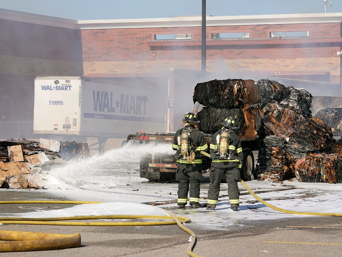 The fire began in cardboard behind the store in the area where packaging is compacted and prepared for shipping.
