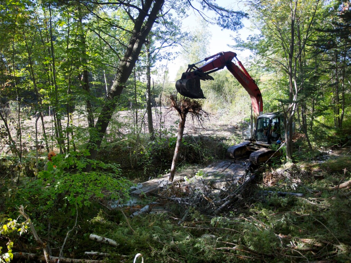 The $850,000 project is the first of its kind in Maine – moving dirt, rock and hemlock trees to sculpt a healthy, meandering creek bed where a polluted drainage ditch has formed in recent decades.