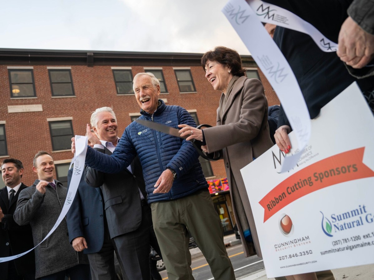 U.S. Sen. Susan Collins was joined by fellow U.S. Sen. Angus King and others for a ceremony Friday marking the conclusion of the $11.2 million downtown revitalization effort.