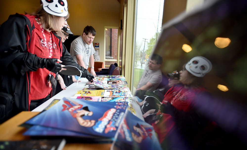 Events Saturday at the Waterville Public Library featured free comic books, costumes and comic book character composition.