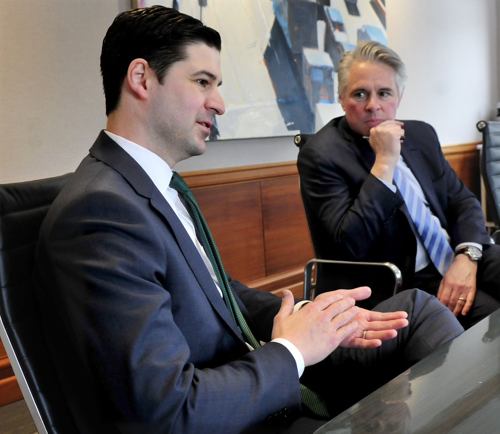 Colby President David Greene and Mayor Nick Isgro met Wednesday to discuss progress of the downtown revitalization effort, saying hundreds of jobs and millions in investments are at stake.
