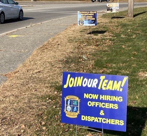 Waterville uses lawn signs to advertise for police officers, dispatchers
