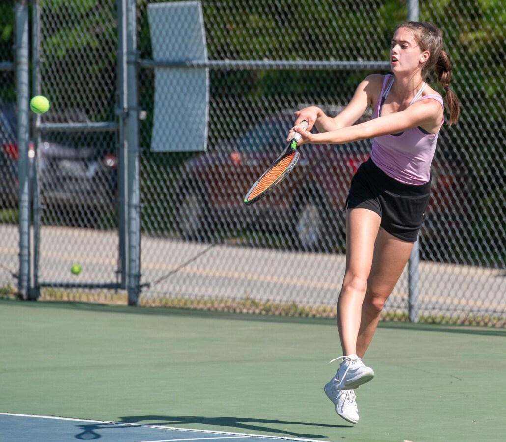 Mt. Ararat’s 10th-ranked Zander Chown, a senior, shakes off Hezekiah Agbuya of Belfast 6-4, 6-2, in the second round of singles tournament.