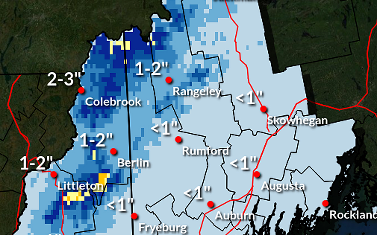 A cold front moving across Maine is expected to bring heavy snow showers and snow squalls Thursday night.