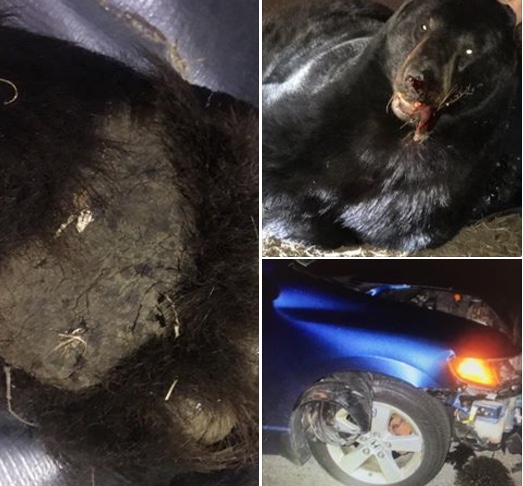 A car hit and killed a black bear in Wells, but no one in the car was injured.